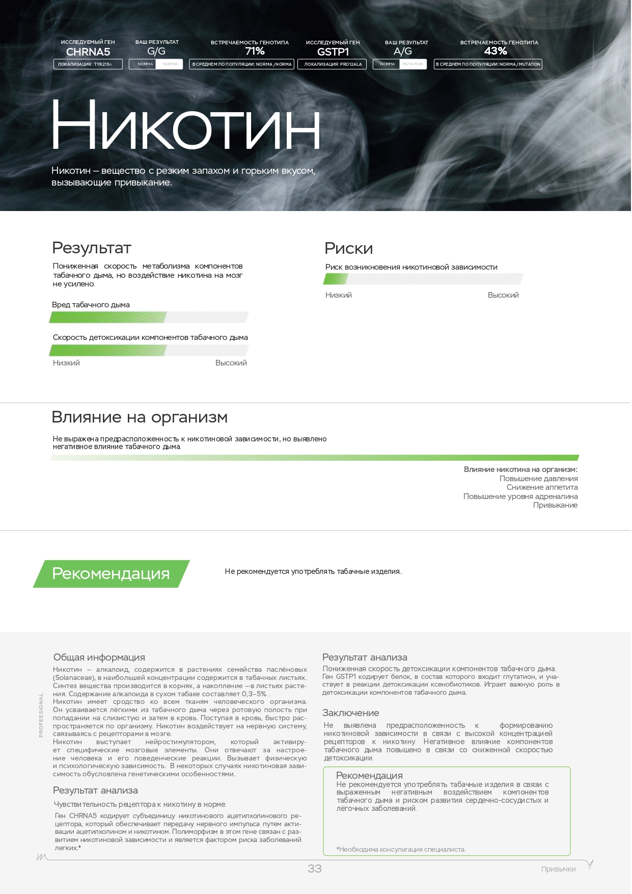 | Рацион питания Метаболизм алкоголя Метаболизм кофеина Физическая нагрузка Непереносимости Вкусовые ощущения Никотин Психологические зависимости Пищевое поведение Потребность в витаминах Уровень холестерина Спортивный потенциал | Рацион питания Метаболизм алкоголя Метаболизм кофеина Физическая нагрузка Непереносимости Вкусовые ощущения Никотин Психологические зависимости Пищевое поведение Потребность в витаминах Уровень холестерина Спортивный потенциал | Рацион питания Метаболизм алкоголя Метаболизм кофеина Физическая нагрузка Непереносимости Вкусовые ощущения Никотин Психологические зависимости Пищевое поведение Потребность в витаминах Уровень холестерина Спортивный потенциал |